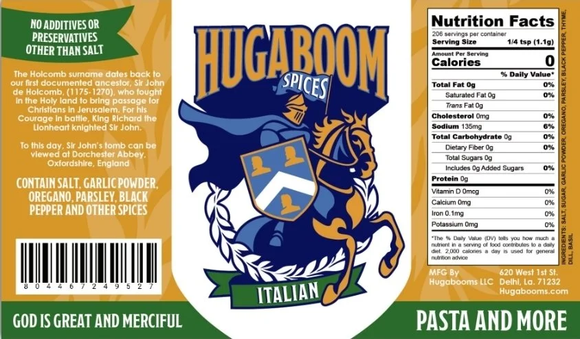 Hugaboom's Combo 8 Oz each $40.00 HUGABOOM'S ITALIAN 8 Oz $8.00 Hugaboom's Original 8 Oz $8.00 Hugaboom's The Rub 8 Oz $8.00 Hugaboom's Brazilian 8 Oz $8.00 Hugaboom's Spicy 8 Oz $8.00 Hugaboom's Blackened 8 Oz $8.00